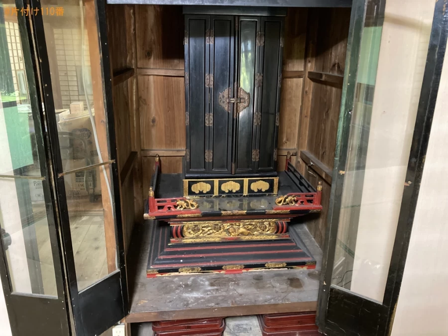 | 担当のコメント | 仏壇の処理にお困りのお客様からご相談いただきました。料金がご予算内だったことがご依頼の決め手になったようです。片付け110番では、御霊抜きも承っております。不用品にお困りの際はまたいつでもご相談ください |